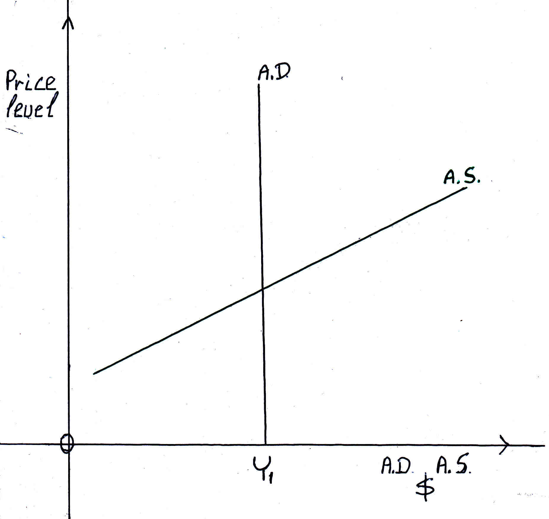 Because the Y1 remains the same we have a vertical national income or aggregate demand curve. As price changes A.D. is the same:
