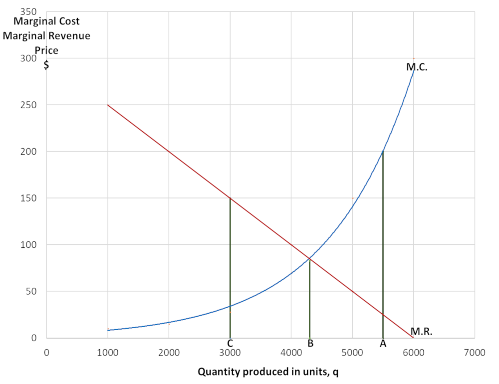 According to the above two equations: M.C. and A.V.C. the graph is as follows: